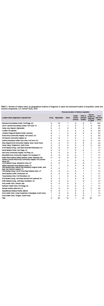 This historical review discusses how the primary challenge presented by malaria infections in the Pacific theater during World War II was an inability to return recovered soldiers quickly to their units, with nearly one percent of malaria patients repatriated for ‘chronic malaria’.