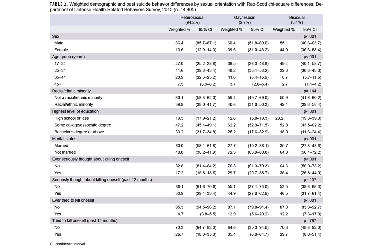 12. Jaycox LH, Morral AR, Street A, et al. Gender differences in health among U.S. service members: unwanted gender-based experiences as an explanatory factor. Rand Health Q. 2023;10(2):8. Accessed Nov. 20, 2025. https://pmc.ncbi.nlm.nih.gov/articles/pmc10187550