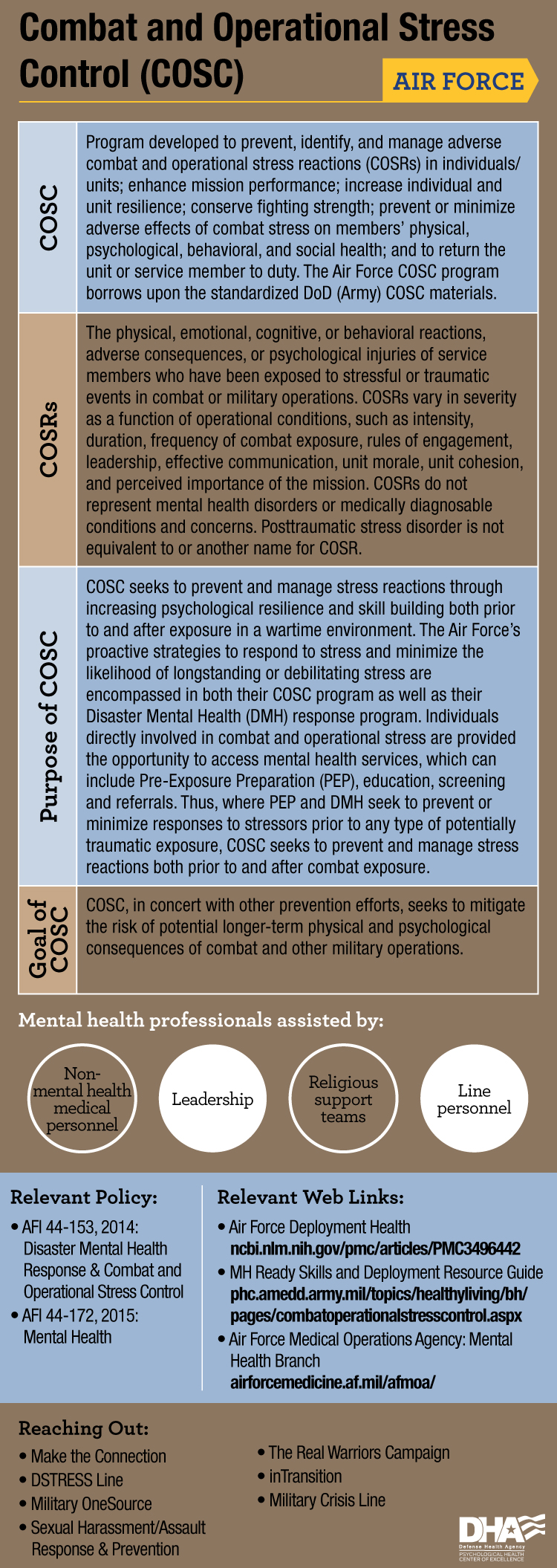 Each service has a Combat and Operational Stress Control program to prevent, identify, and manage combat and operational stress reactions.