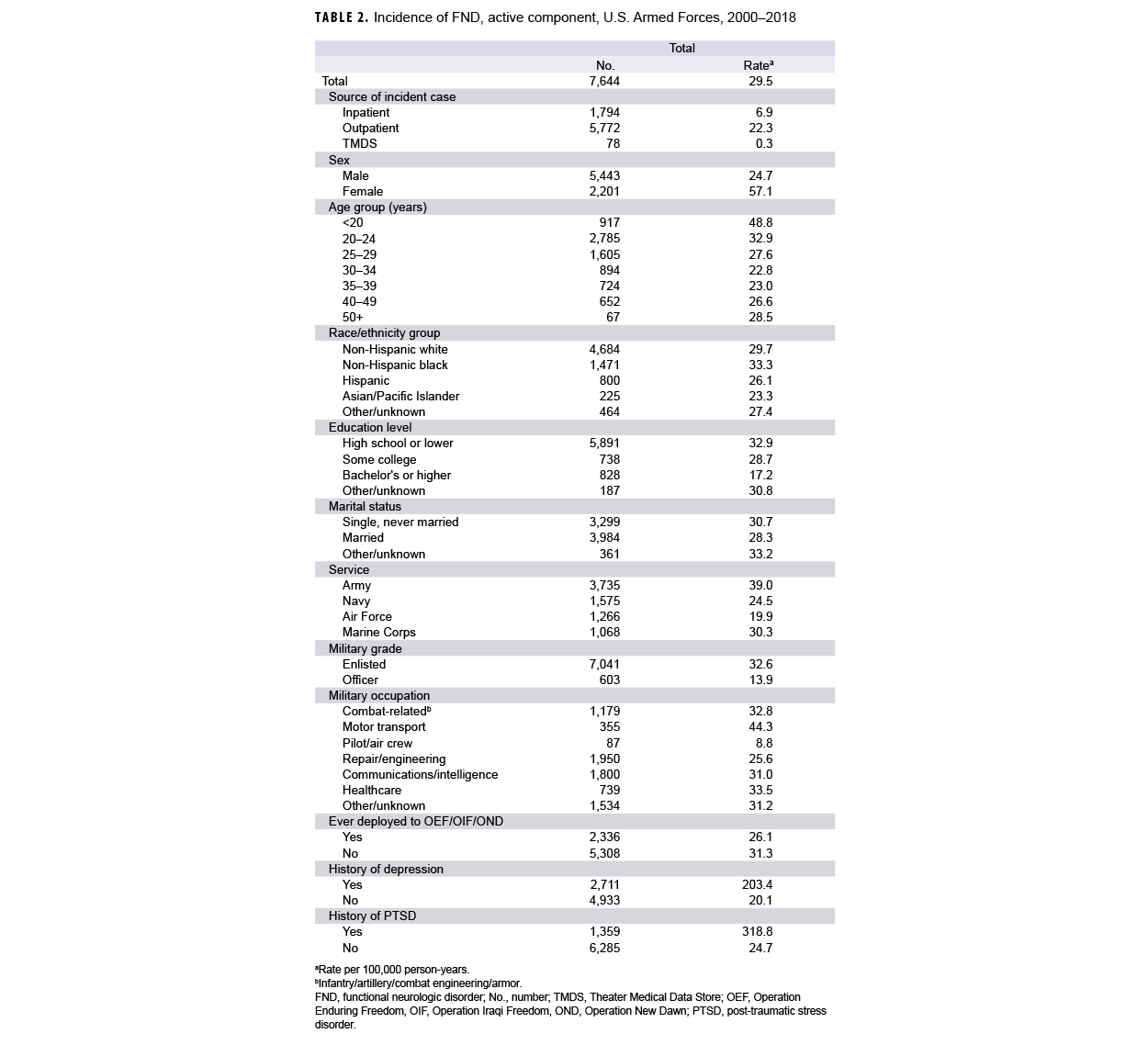 31. Schmied EA, Highfill-McRoy RM, Larson GE. Mental health and turnover following an initial term of military service. Mil Med. 2012;177(7):766-772. doi:10.7205/milmed-d-11-00430